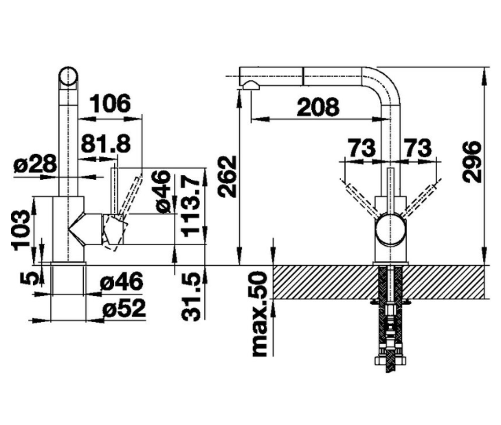 • Rozšířený akční radius díky 360°otočnému výtokovému raménku