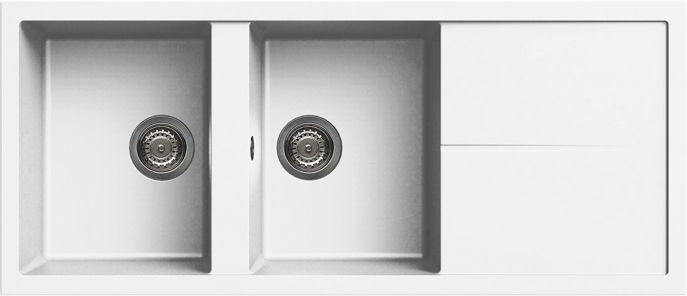 Integrovaná oblast pro příslušenství v odkapávači, vybavená předvrtanými otvory, které vám umožňují instalovat doplňky: excentrické ovládání odpadu, dřezovou baterii s vytahovací sprchou a dávkovač saponátu.