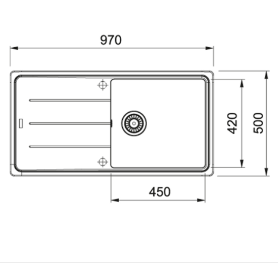 Spodní skříňka 600.00 mm Ventil 3 1/2'' sítkový Délka 970.00 mm Šířka 500.00 mm Rozměr dřezu 450.00 mm Rozměr dřezu 420.00 mm Hloubka dřezu 190.00 mm Výřez 950.00 mm Výřez 480 ...Více informací