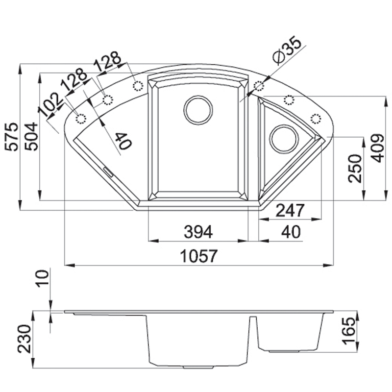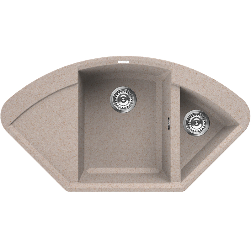 Kuchyňské dřezy se zkosenými hranami. Systém Prisma-clean, který využívá polyedrickou povahu tohoto konkrétního geometrického tvaru, nahrazuje klasický vnitřní zaoblený tvar, za moderní lineární, s prismatickými liniemi, které změkčují vnitřní prostor kuchyňského dřezu a usnadňují jeho čištění při zachování moderního vzhledu a jedinečného estetického výsledku.
