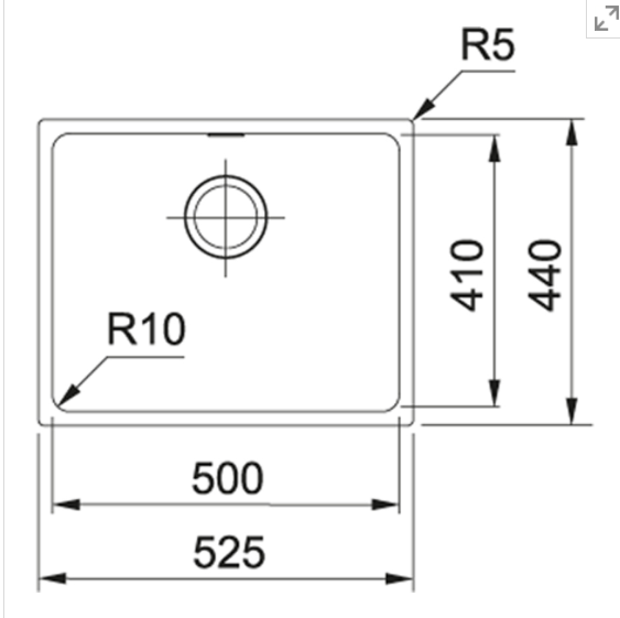 Spodní skříňka 600.00 mm Ventil 3 1/2'' sítkový Délka 525.00 mm Šířka 440.00 mm Rozměr dřezu 500.00 mm Rozměr dřezu 410.00 mm Hloubka dřezu 200.00 mm