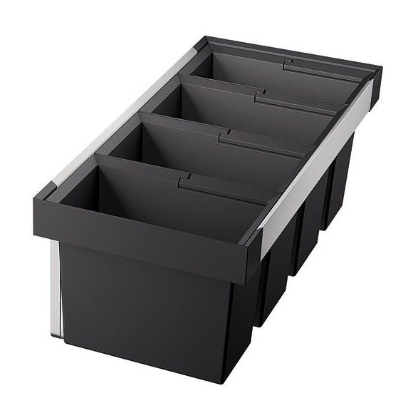 Rozložení nádob: 3 x 19 l + 1 x 16 l Košový systém do zásuvky Šířka skříňky: 90 cm Rychlá a snadná montáž Systém s přesným rámem pro nádoby a sladěnými barvami Snadná přístupn ...Více informací