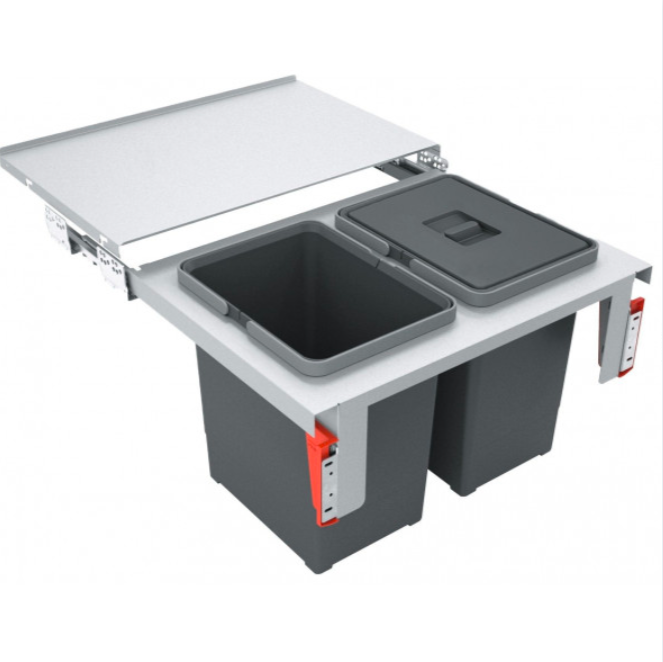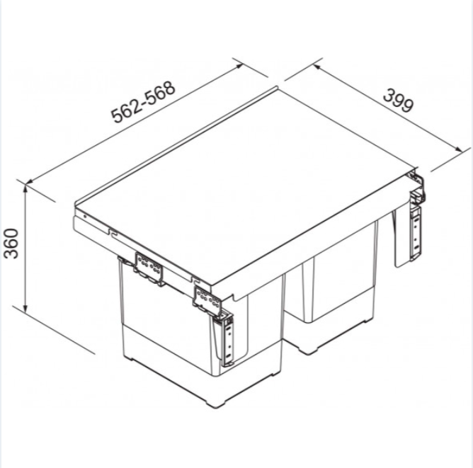 Čelní výsuv Min. montážní prostor: 562 × 399 × 375 mm Objem: 2 × 18 l Třídění odpadků: Dvoudruhové Barva: Šedá 2 Koše 1 × Víko na 18 l koš (133.0284.696) v ceně koše Kovová po ...Více informací