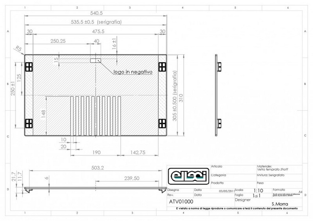 Skleněná posuvná krájecí deska ELLECI ATV01000 Rozměr: 541x310 mm