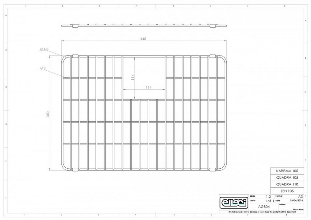 Nerezový rošt ELLECI AGB01304 Rozměr: 445 x 310 mm Vhodné pro: KARISMA 105, QUADRA (110, 105), ZEN 105