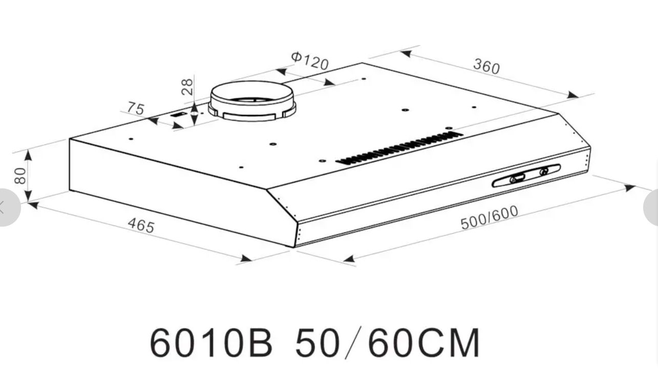 Závěsný odsavač par Motor 85 W LED osvětlení 2,5 W 3 úrovně výkonu Šíře 60 cm Bílé provedení Mechanické ovládání Průměr odtahového hrdla 12 cm Odtahové potrubí Ø 12 cm není so ...Více informací
