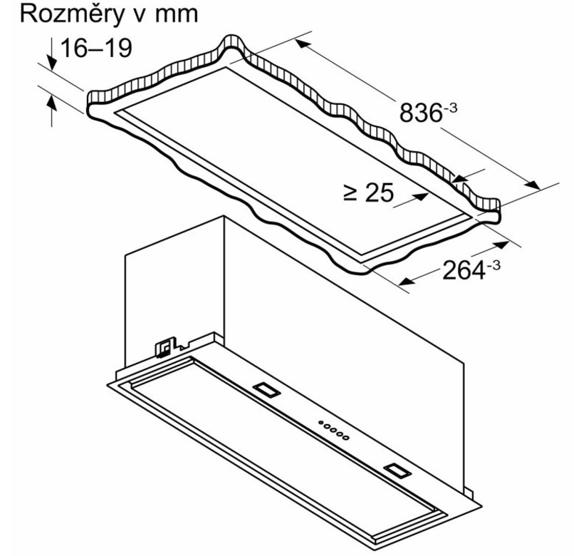 rozměry pro vestavbu (V x Š x H): 345 x 836 x 264 mm
