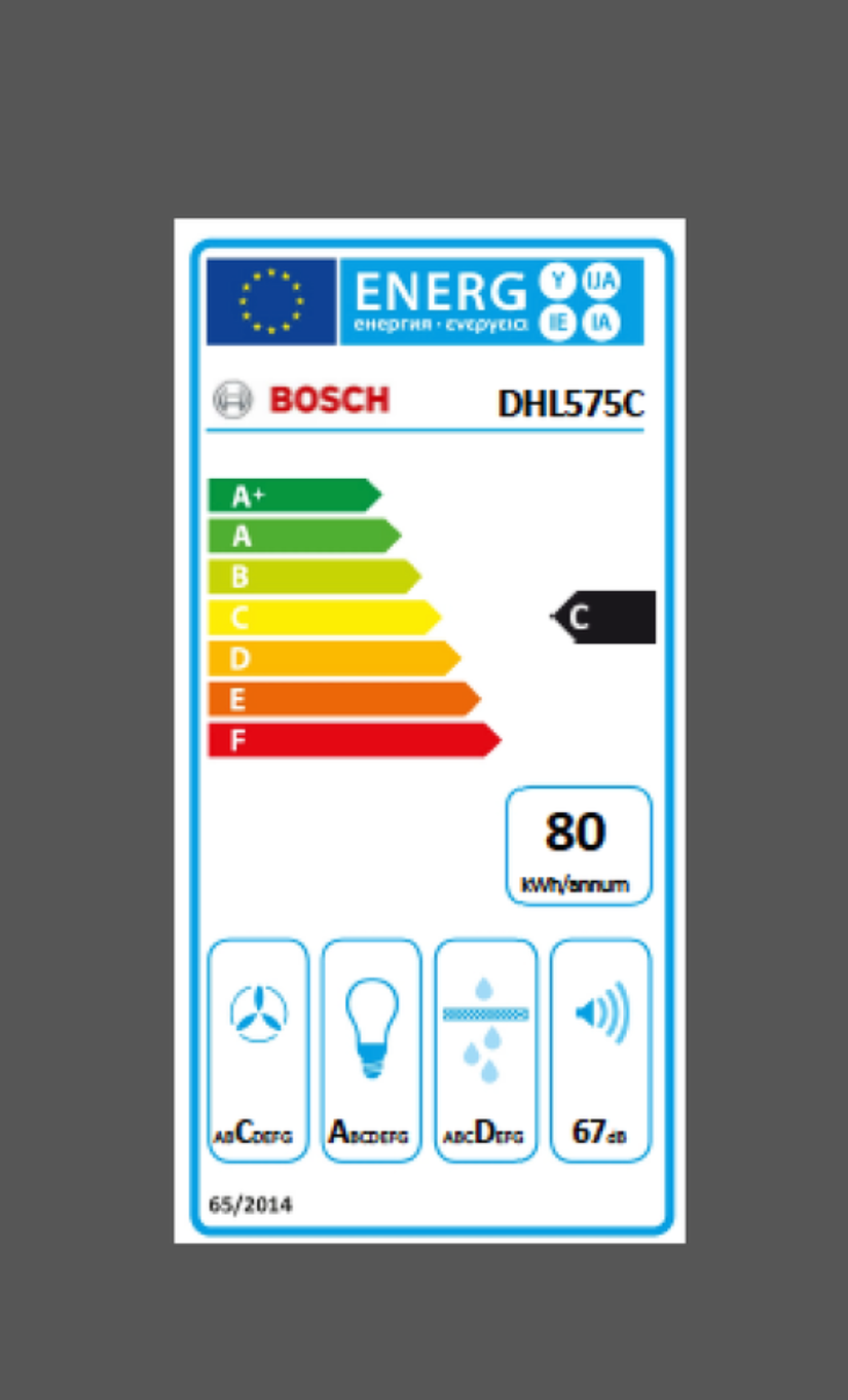 Bosch DHL575C Popis produktu Tvar: vestavný, 50 cm Provoz a výkon Energetická třída: C Průměrná spotřeba energie: 80.1 kWh / rok Ventilátor účinnost: C Osvětlení účinnost: A T ...Více informací