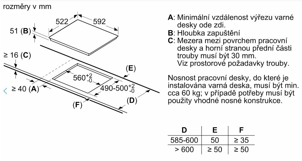 | Rozměry pro vestavbu | |