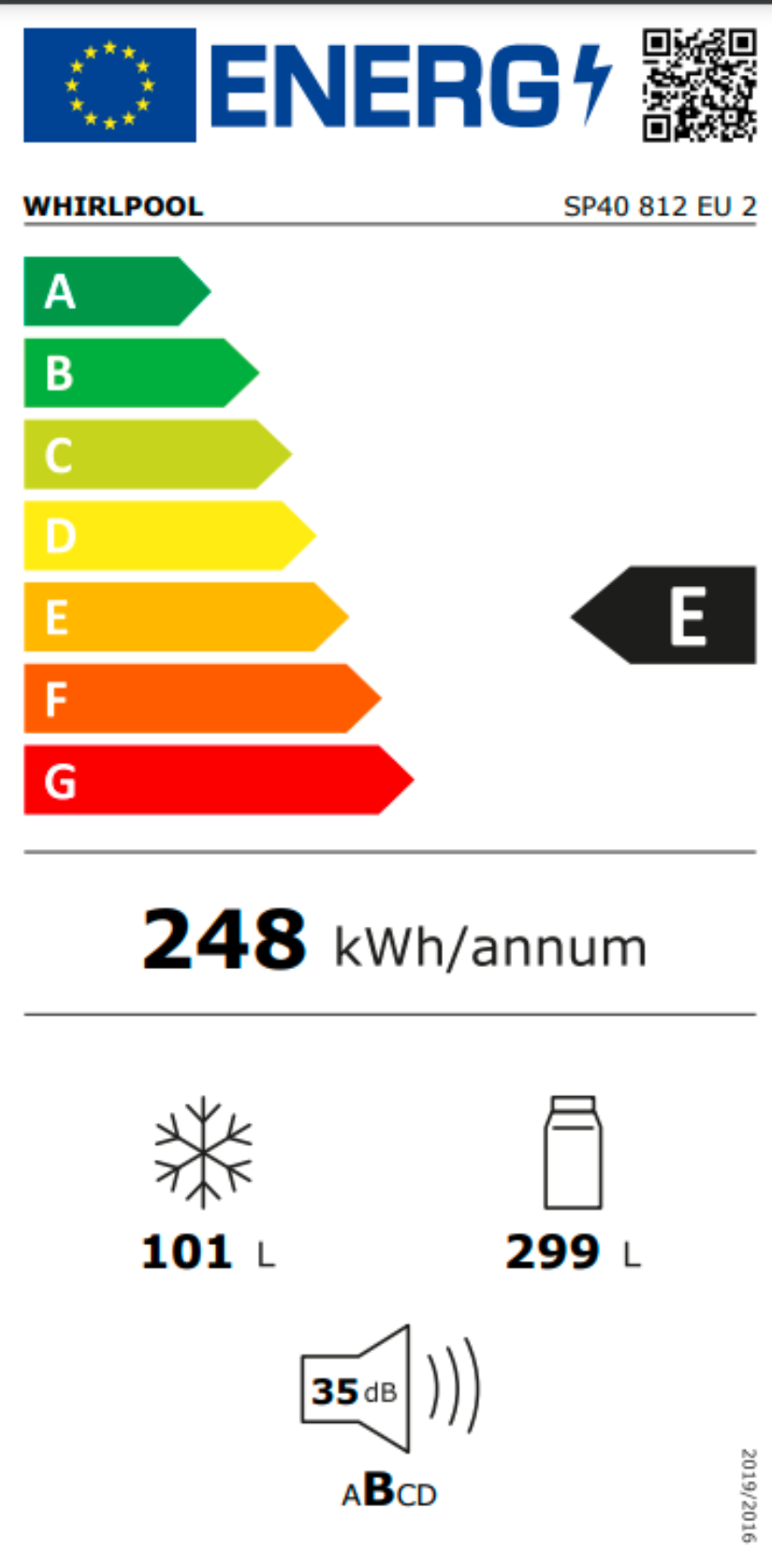 Roční spotřeba energie v kilowatthodinách za rok (kWh/rok) (EU) 2017/1369: 248