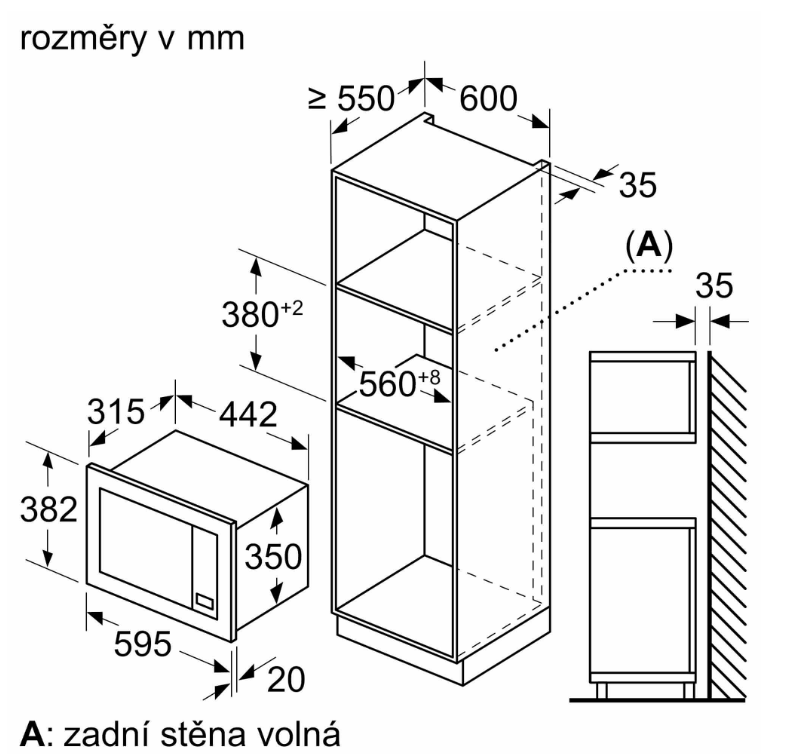 vestavný spotřebič do horní skříňky o šířce 60 cm s hloubkou min. 30 cm, pro vestavbu do vysoké skříňky o šířce 60 cm