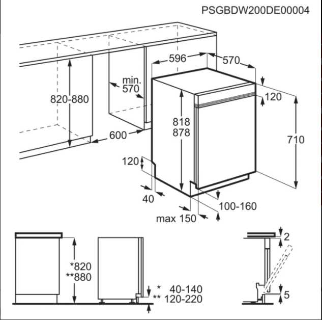 Vestavné rozměry V(min/max)xŠxH (mm): 820/880 x 600 x 550