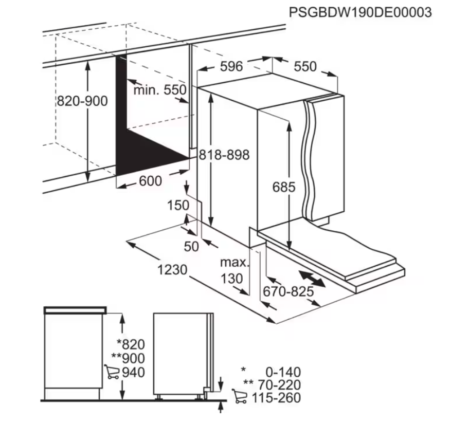 Prostor pro instalaci VxŠxH (mm): 820-900x600x550