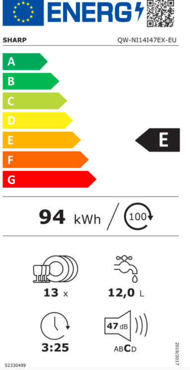 Spotřeba el.energie: 94 kWH/100 cyklů