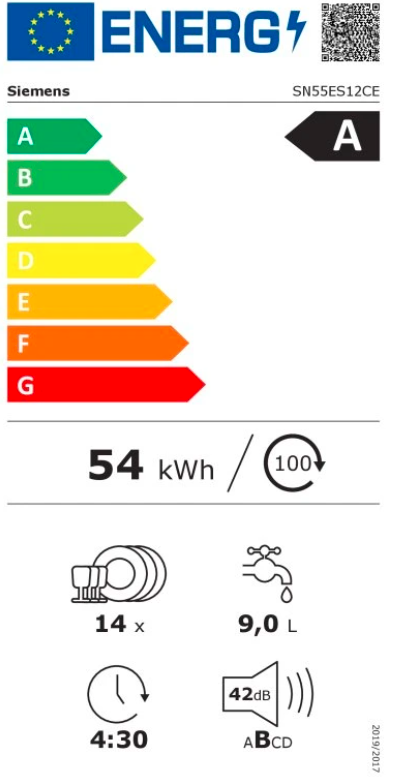 třída energetické účinnosti:¹ A energie² / voda³: 54 kWh / 9 l kapacita: 14 sad nádobí doba trvání programu:⁴ 4:30 h:min hladina hluku: 42 dB(A) re 1 pW třída hlučnosti: B hlu ...Více informací