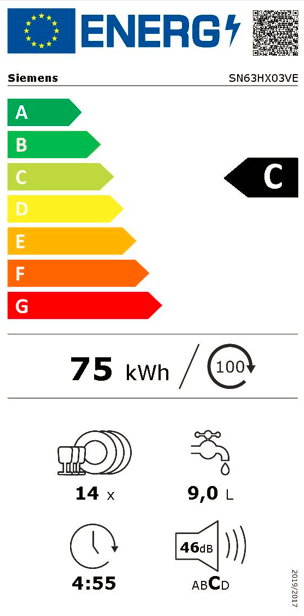 Spotřeba energie na 100 cyklů eco programu: 75 kWh