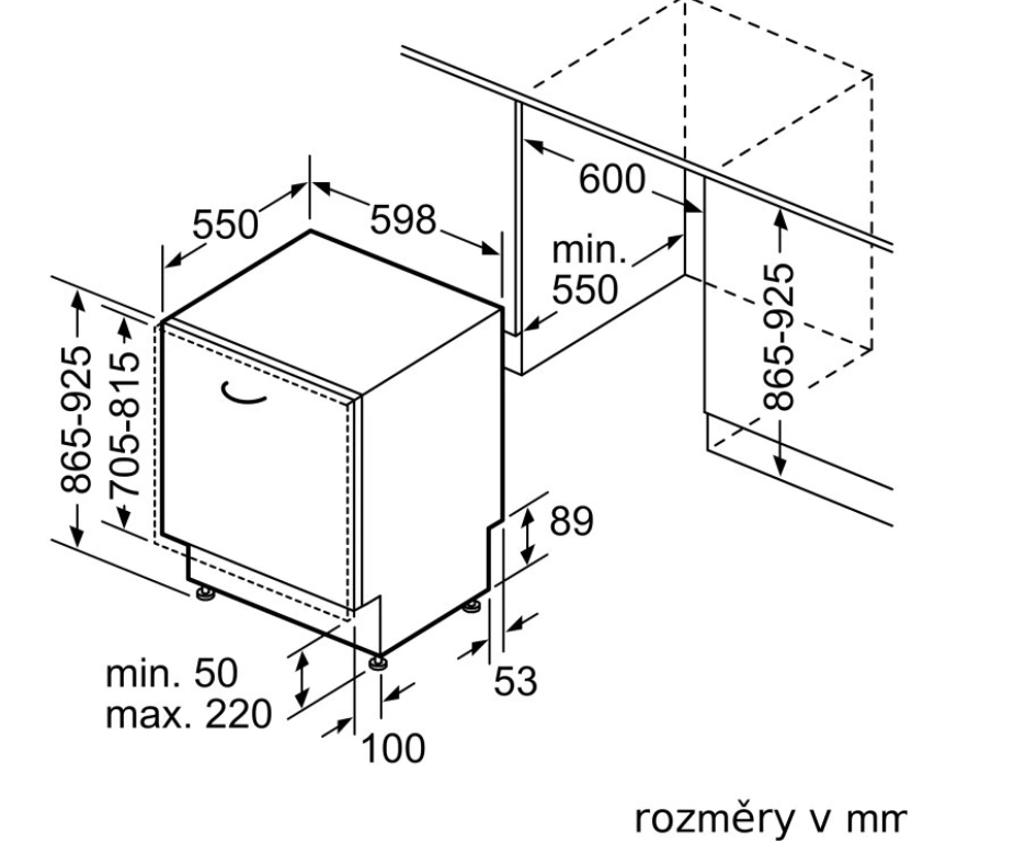 rozměry spotřebiče (V x Š x H): 86.5 x 59.8 x 55 cm
