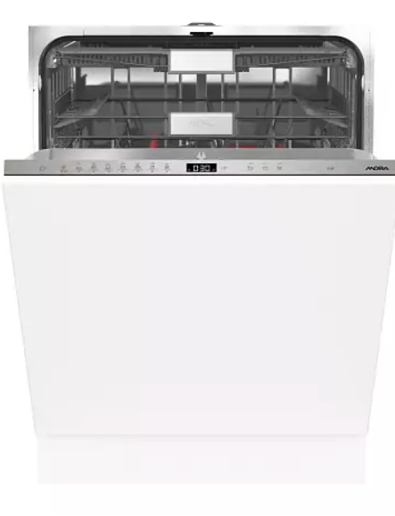 Vestavná plně integrovaná myčka MORA IM 647C5 v úsporné energetické třídě C si při standardní šířce 60 cm poradí s neuvěřitelnými 16 sadami nádobí. Nádobí dokonale umyje díky třem ostřikovacím ramenům a pěti výškovým úrovním proudu vody, takže bude bezvadně čisté, i když bude myčka opravdu plná a nádobí bude hustě naskládané. Je vybavená třemi koši s pohyblivými prvky a přizpůsobitelným nastavením. Vodící lišty v horním koši jsou navíc opatřeny kuličkovými ložisky. Horní koš slouží pro pečlivé a šetrné mytí příborů a kuchyňského náčiní, levý a pravý panel můžete posouvat podle toho, jak velký prostor v horním koši potřebujete. V horním a spodním koši najdete prostor i pro vyšší skleničky na víno. Speciální pryžový materiál je udrží v pevné poloze. Tyto držáky jsou flexibilní a dělitelné, s vyhrazeným prostorem pro různý počet sklenic, aby vyhovovaly vašim potřebám. Skrytý ovládací panel je opatřen dotykovým ovládáním s displejem a mnoha praktickými funkcemi, jako je například RychléMytí, které umožňuje zkrátit délku vybraných programů. Zvolíte-li funkci SušeníPlus, po ukončení programu se automaticky pootevřou dvířka, aby tak unikla pára a následný sušicí cyklus byl efektivnější a energeticky úsporný. Energii pomáhá šetřit i možnost připojení přímo na teplou vodu pomocí speciální hadice, odolávající vysokým teplotám. Samozřejmostí je úsporný ECO Program nebo AUTO Program, který sám zvolí optimální parametry mytí. Vhod přijde i odložený start až o 24 hodin. Myčka má navíc praktický samočisticí filtr, a tak automaticky odstraní zbytky mastnoty a jídla ve filtru a zamezí nesprávnému chodu spotřebiče. Se systémem AquaStop se nemusíte obávat nemilého překvapení v podobě vytopení. Myčka je osazená novým výkonným invertorovým motorem a dokonce se i sama vyčistí – stačí jednou za měsíc pustit automatický program čiťtění, který vyčistí vanu, ostřikovací ramena i trysky.