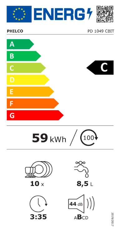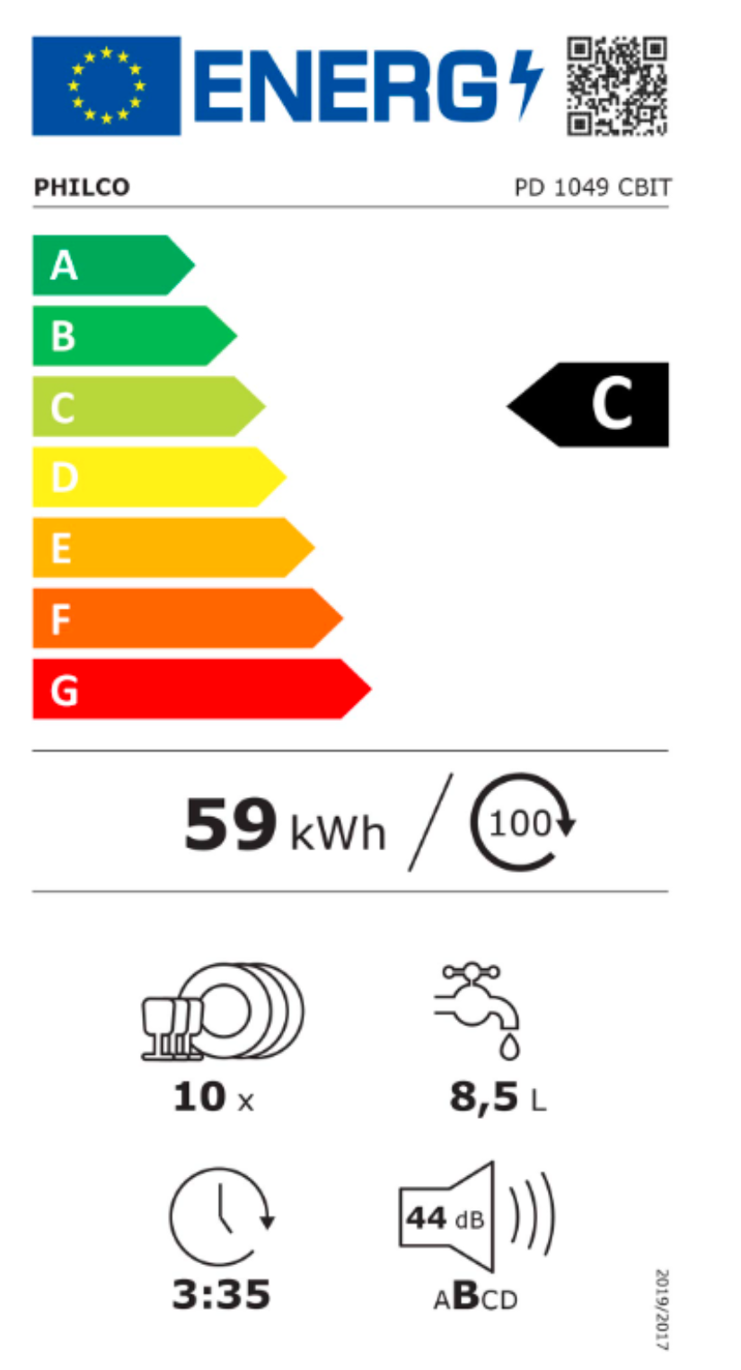 Vestavná myčka PHILCO PD 1049 DBIT Energetická tříd C Počet sad nádobí 10 Spotřeba energie (100 cyklů) 59 kWh Spotřeba na ECO program 0,593 Spotřeba vody (cyklus/l) 8,5 Doba t ...Více informací