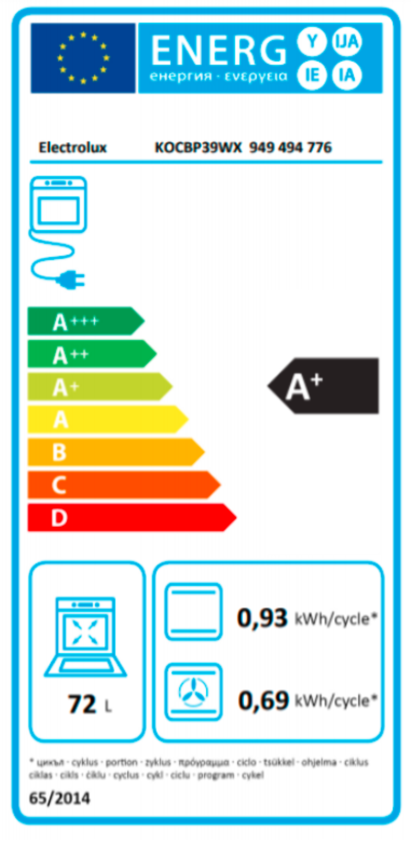 | Objem trouby L | 72 |