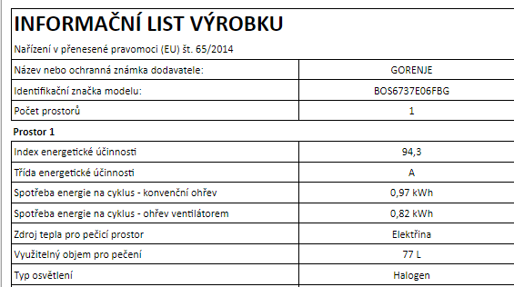 Regulace teploty v troubě - max. teplota