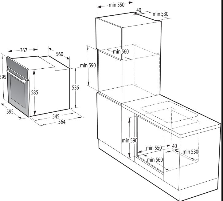 Výška pro vestavbu cm 59