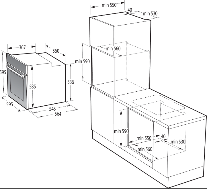Výška pro vestavbu cm 59