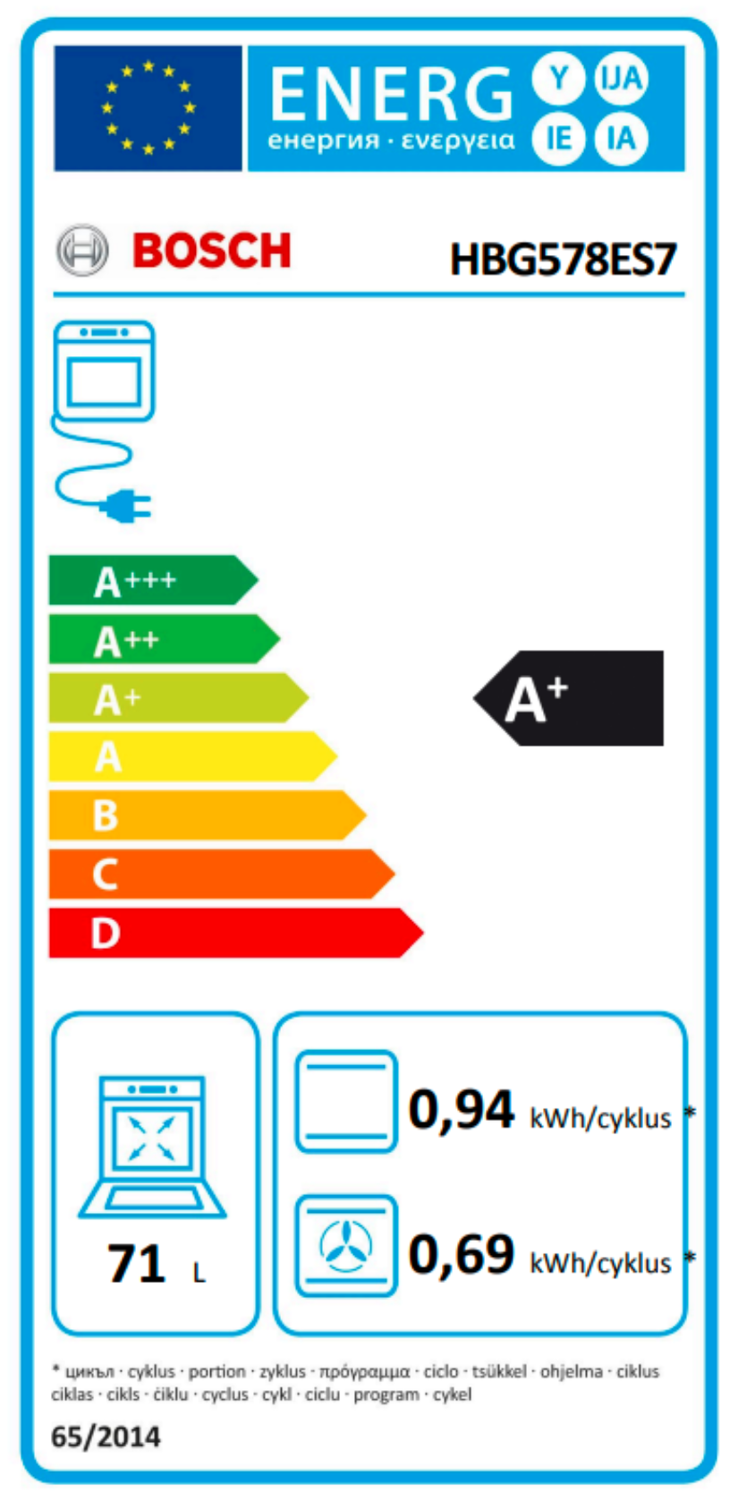spotřeba energie na cyklus při konvenčním ohřevu:0.9 kWh(na stupnici třidy energetické účinnosti od A+++ do D)