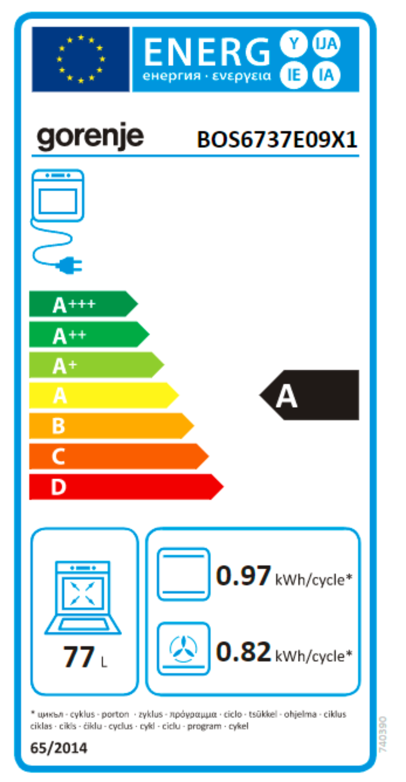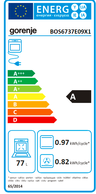 Spotřeba elektrické energie na jeden cyklus v režimu ventilátorové nucené konvekce (2010/30 / ES)        0,82 kWh/cycle