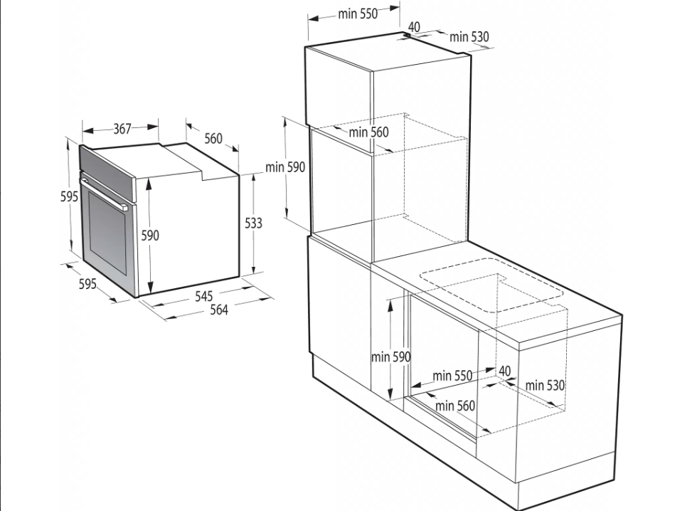 | Výška pro vestavbu cm | 59 |