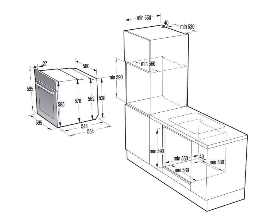 Výška pro vestavbu cm 59