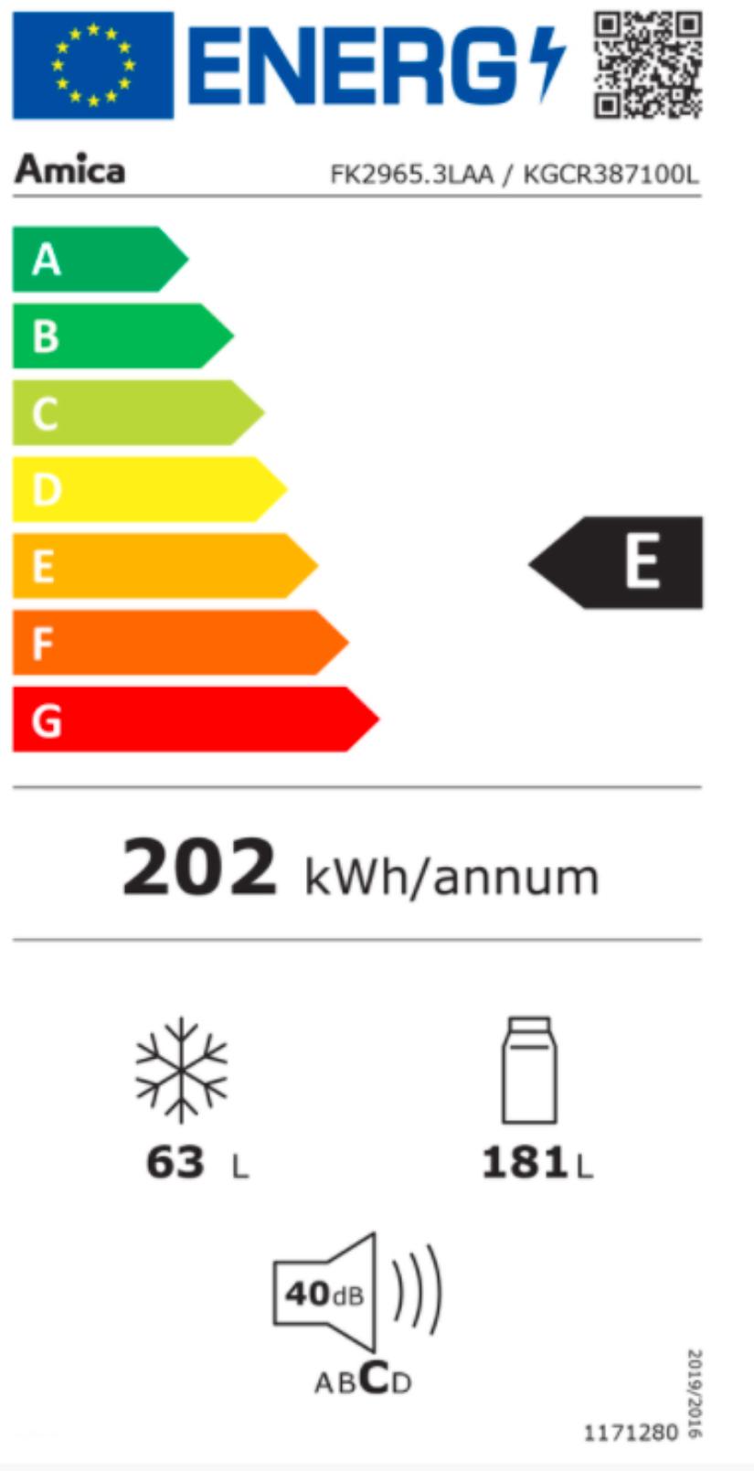 Kombinovaná chladnička s mrazákem dole Energetická třída E Klimatická třída ST Mrazící třída mrazícího prostoru */*** Netto objem 244 l Objem chladničky 181 l Objem mrazničky ...Více informací